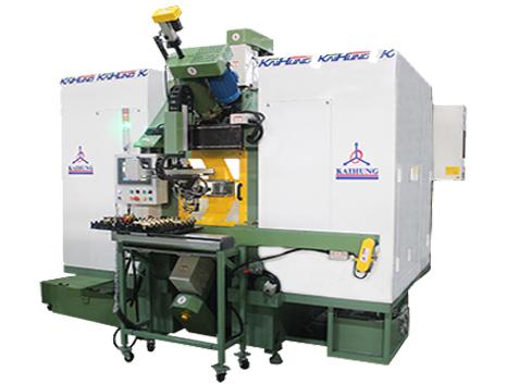 凯骐智能机械在五金阀门燃气阀(阀体、球阀、阀座、接头、锁头等),针对顾客需求规划水车式多任务位组合机床、转盘式多任务位组合机床,主轴转速与切削速度配置上,依照铝、黄铜、铁、铸铁等不同材质,在参数调整之加工可提供专机寿命与使用性。