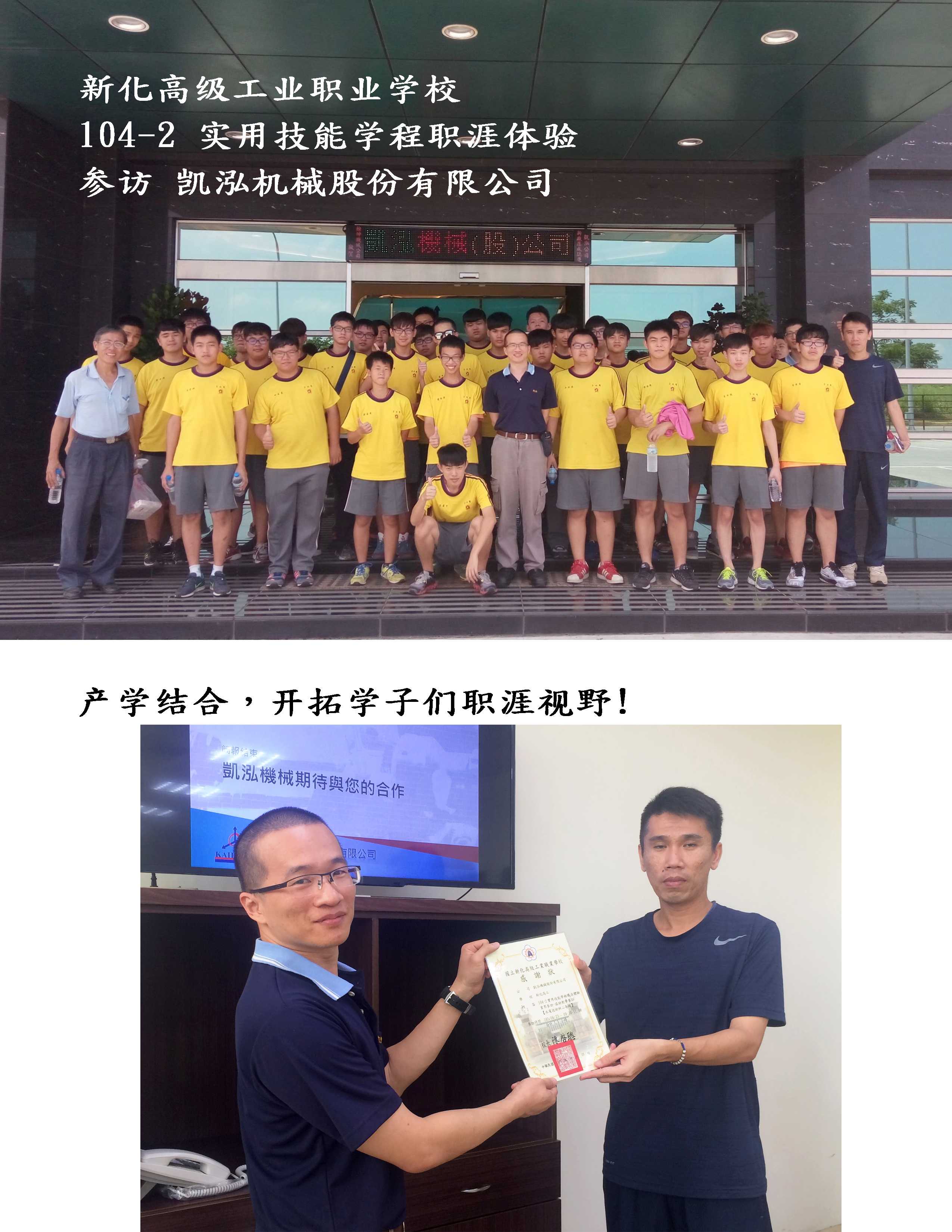 基于企业社会责任,凯泓欢迎学生认识职场环境,认识完成一部机械的背后,有着企业同仁间同心协力,达成各项零件的设计加工、组装和检验等作业。