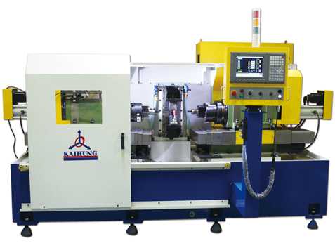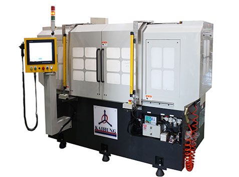 凯骐智能机械规划二路加工机床,左右两侧配置主轴头同步车削,依铝、钢之工件的材质需求,可任意分割角度;适用于五金阀门燃气阀、车辆工业零配件之产业。